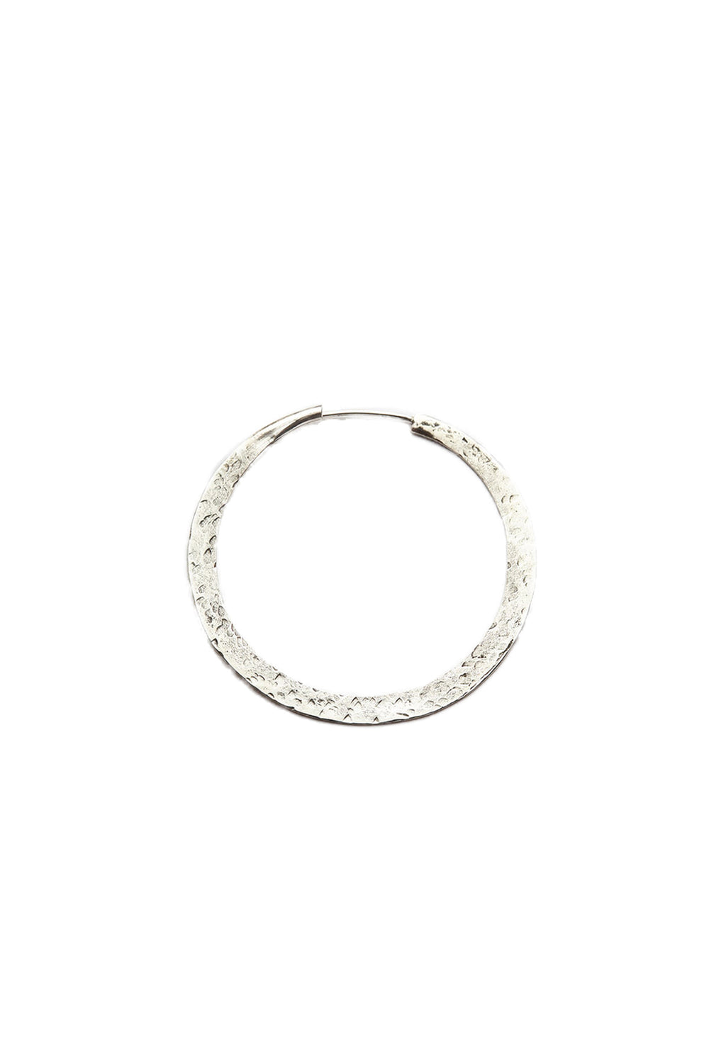 Este deslumbrante aro de plata está hecho con una técnica especial de martillado, lo que le da un aspecto menos ordenado, más moderno. Elaborado a mano en Bali por talentosos artesanos, cada pieza es única con sus propias características.