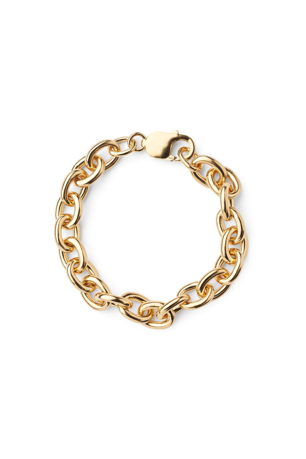 Definido por un diseño minimalista pero femenino, el brazalete presenta eslabones delicados que reflejan la luz de manera hermosa con cada movimiento. Su elegante simplicidad lo convierte en una pieza versátil, perfecta para llevar sola o combinada con otros brazaletes de la colección de joyería de Rabens Saloner para un look personalizado.