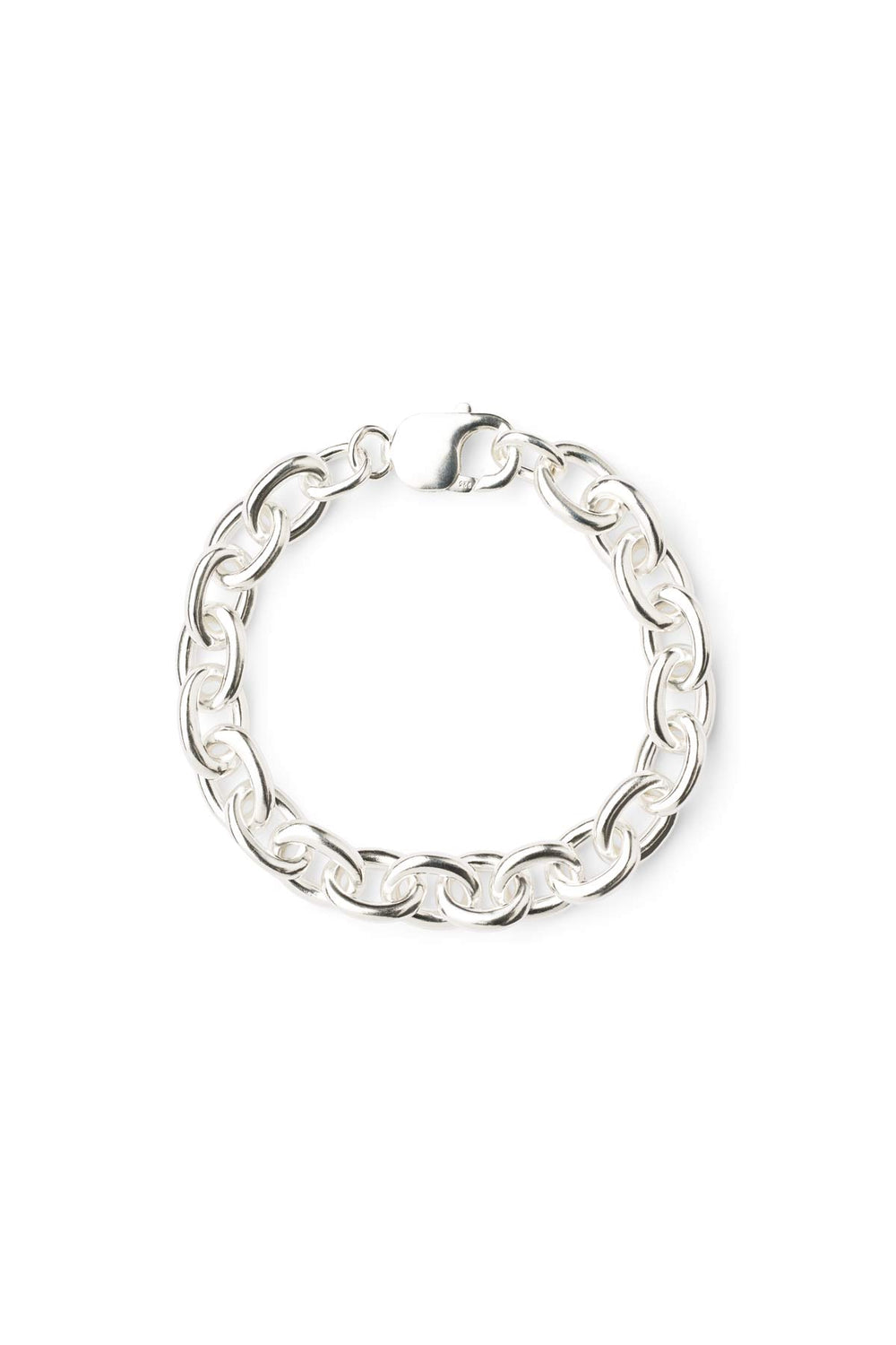 Definido por un diseño minimalista pero femenino, el brazalete presenta eslabones delicados que reflejan la luz de manera hermosa con cada movimiento. Su elegante simplicidad lo convierte en una pieza versátil, perfecta para llevar sola o combinada con otros brazaletes de la colección de joyería de Rabens Saloner para un look personalizado.