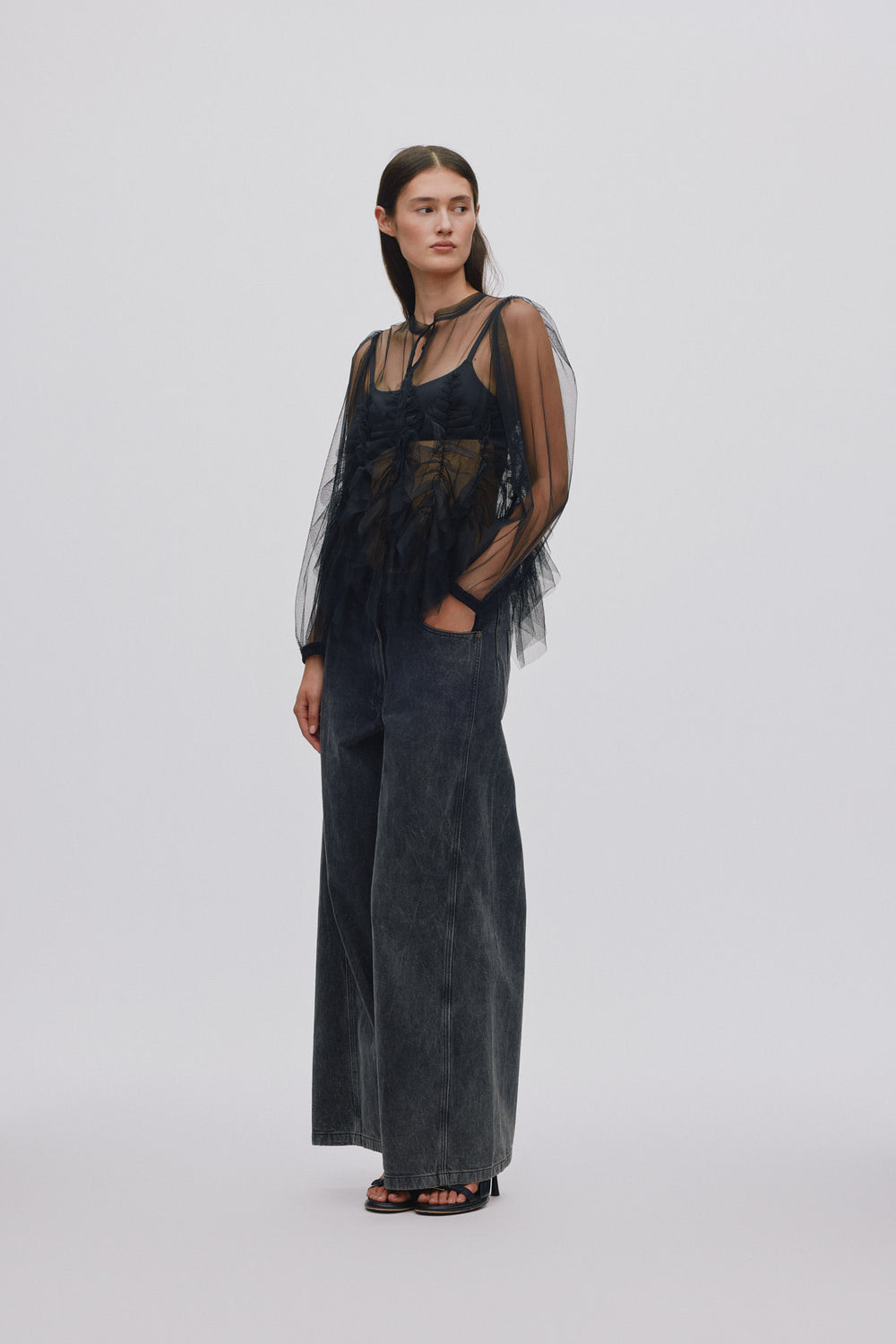 Eleva tu colección de denim con estos pantalones de pierna ancha en un lavado negro.