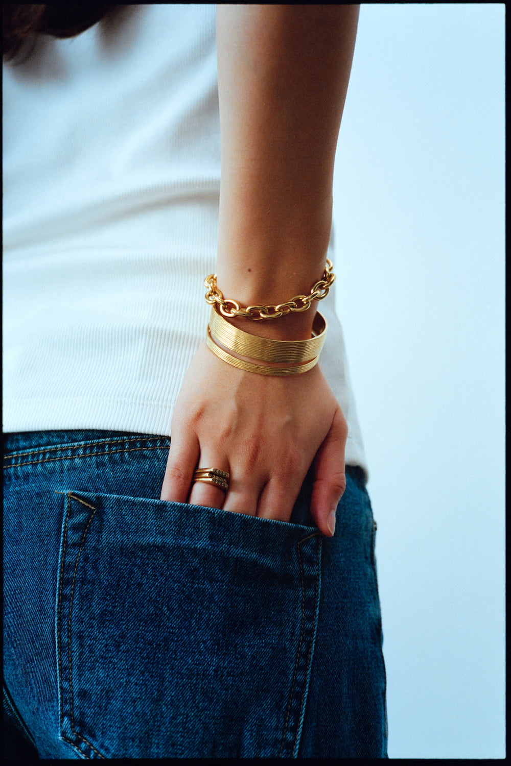 Diseñado como parte de una serie de tres anillos apilables, cada uno con su propia altura distintiva —siendo este el de altura media—, invita a combinarlos para crear una expresión personalizada y escultórica.